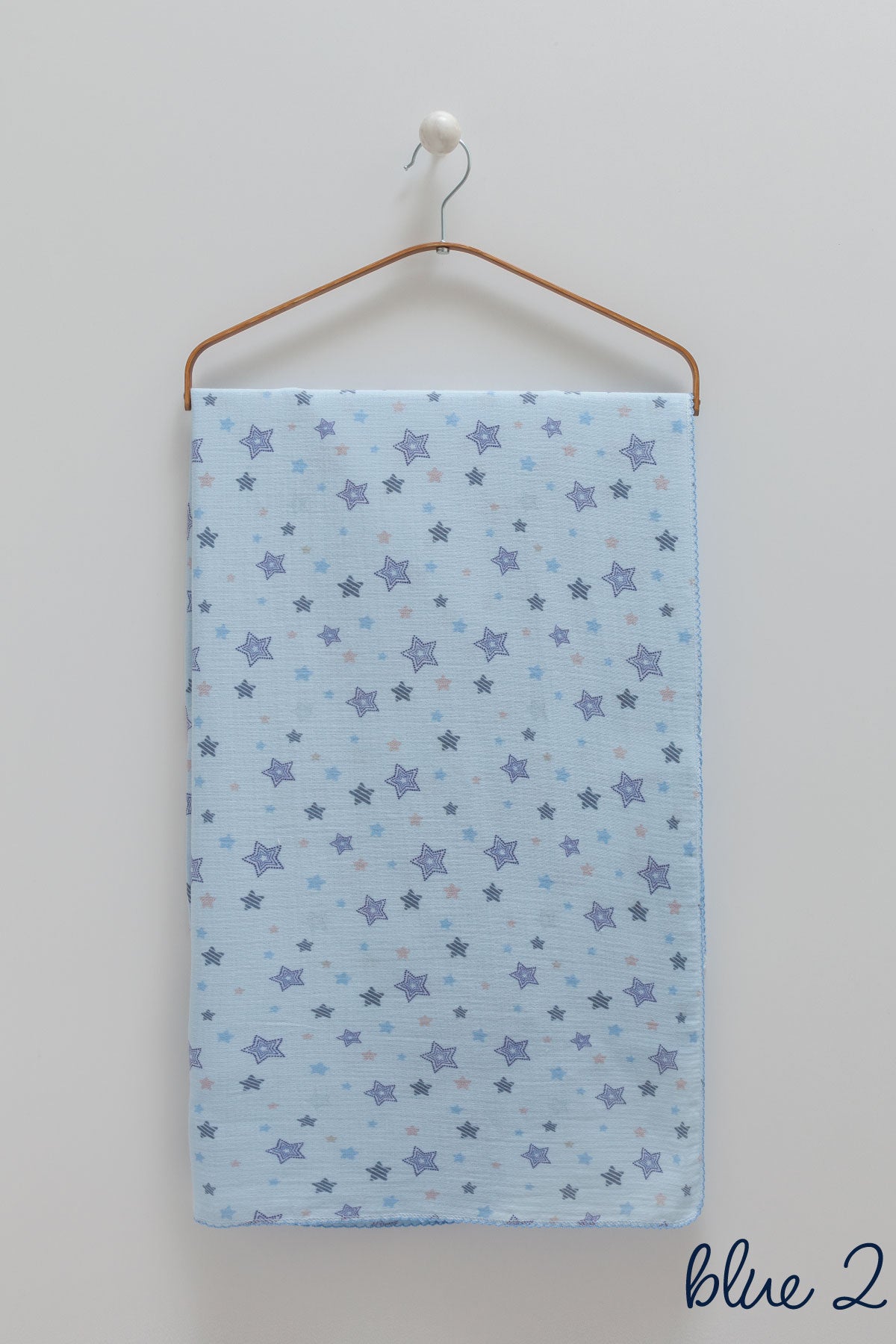 Müslin örtü koleksiyonu, %100 pamuklu doğal kumaşıyla maksimum yumuşaklık ve nefes alabilirlik sunar. Geniş ebatı sayesinde hem örtü, hem alt değiştirme örtüsü, hem de emzirme veya puset örtüsü olarak kullanılabilir.