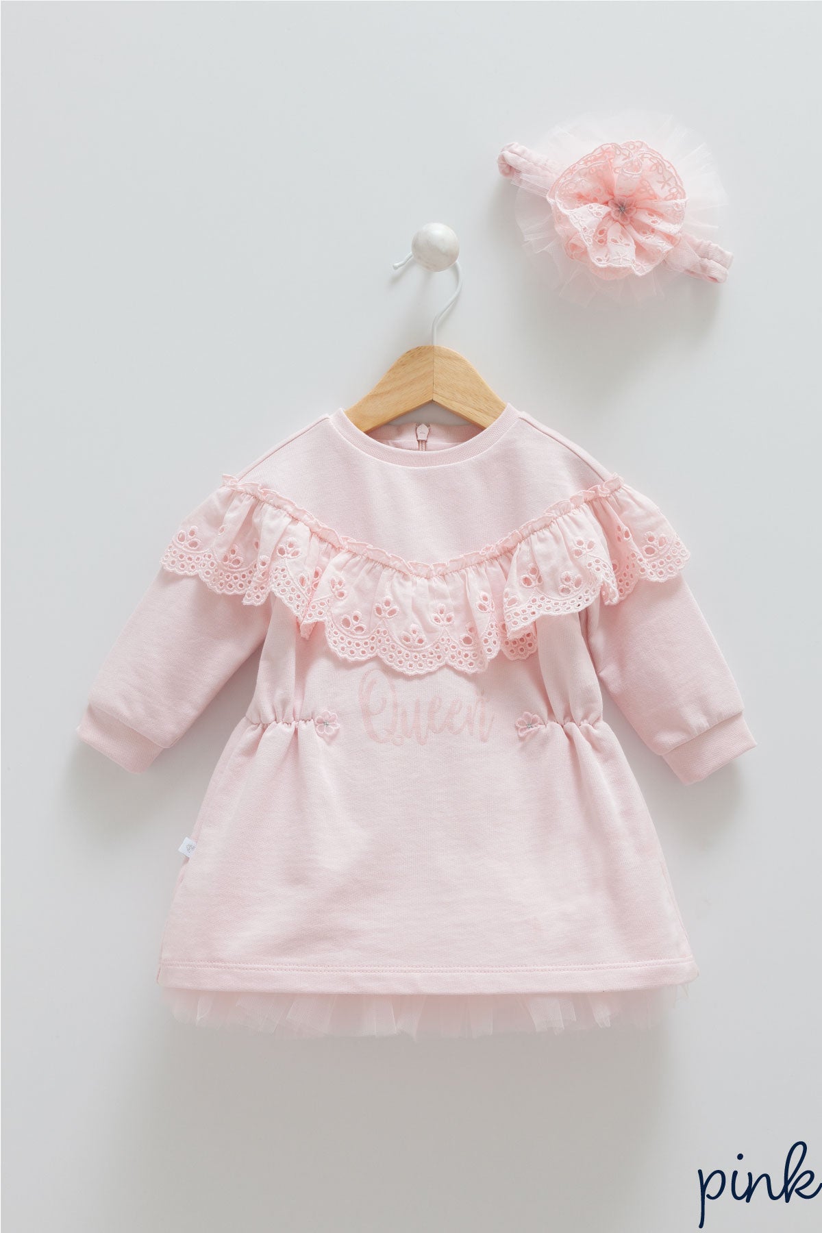 Bebeğinizin şıklığına ekstra bir dokunuş katın! Ckrem renkli bebek elbisesi, zarif fırfır detayları ve yumuşacık kumaşıyla minik prensesiniz için tasarlandı.